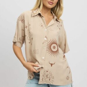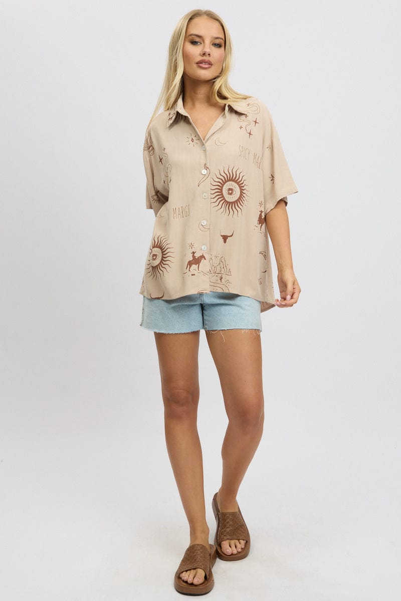 Beige Abstract Relaxed Shirt Short Sleeve